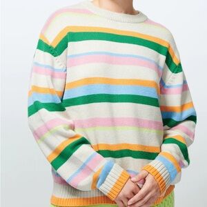 The Gravity Stripe is a new signature style from McIntyre, crafted from premium 100% Australian merino wool in an exclusive combination vibrant seasonal colors. This limited-edition piece is luxuriously soft with a relaxed oversized fit.