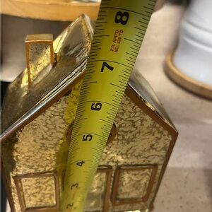 Charming gold mercury glass house decor. Perfect for adding a touch of elegance to any space.
