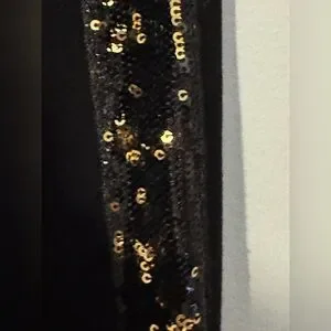 Black with gold and black sequins down both legs leggings dressy sparkle sequins dark fairy soft stretchy double knit