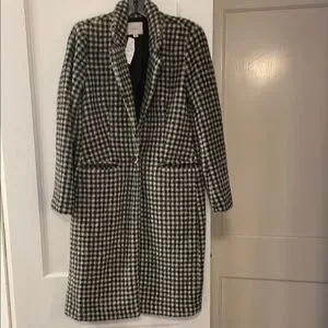 Elevate your style with this chic NWT Loft black and white houndstooth coat in size small petite. Perfect for any occasion, it offers both warmth and elegance. Lined and single button front and back list. Function front pockets. 39” long and approx 18” pit to pit.