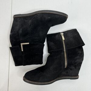 Johnston & Murphy Size 7.5 Brynn Cuff Wedge Bootie Black Oiled Suede Ankle Boots