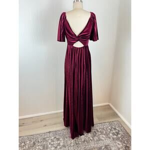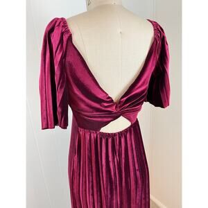 ASOS Burgundy Wine Velvet Maxi Dress 4 Empire Waist Pleated Twist Cutout Back
