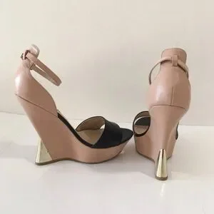 Steve Madden Beige Open-toe Wedges with Gold Heel Detail