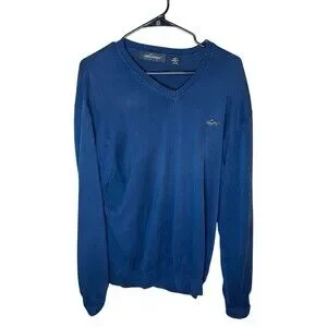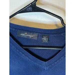 1 Pre-owned Greg Norman V Neck Pullover Sweater Men's XL Blue Long Sleeve Golf Sweatshirt. Made in India, 100% cotton, machine washable, wash with similar colors, tumble dry on low. Do not bleach. Pullover in great condition with minor signs of wear. No visible stains or imperfections. Stored in a smoke-free home. Ready to ship! Always down to bundle items together. Feel free to reach out with any questions or offers!