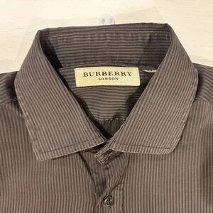 Burberry Button Down Gray/Charcoal-Striped Sport Shirt, 15.5/39, gray/charcoal-striped, 100% cotton, vg condition with only the inside materials tag looking worn, ptp 21 length 29, sleeve 35