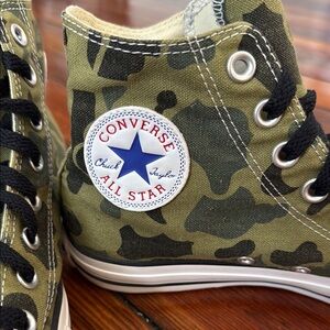 Stylish Converse high-top sneakers with a beautiful camouflage pattern. Features black laces, in mint condition.