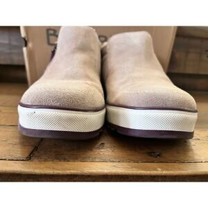 This is a Pre-owned, only worn a few times, pair of women's suede sneaker booties