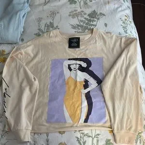 Forever 21 Cream and Purple Graphic Hoodie