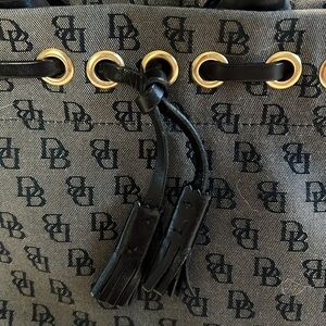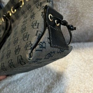 Dooney & Bourke Signature Monogram Tassel Tote Handbag Purse Black Y2K Vintage