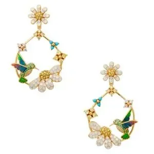 KATE SPADE• Hummingbird Flower Wreath Hoop Drop Earrings