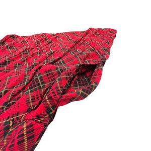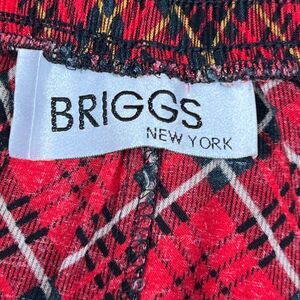 Briggs New York pleated skirt is a timeless piece that combines classic style and versatile functionality. The midi-length skirt is designed in a vibrant red tartan plaid pattern, evoking the spirit of Scottish heritage with every pleated detail. Made from a comfortable blend of polyester and rayon. Crafted to flatter with a mid-rise elastic waist, this medium-sized skirt offers comfort and style. Its knit fabric ensures a perfect fit for regular size types, while the garment's machine washable nature makes maintenance a breeze. No Size tag. 30" waist and is about 31" long. Please be aware that this item may attract lint or hair due to its fabric type. It will be shipping from a smoke-free, pet-friendly environment. While we strive to ensure that all items are clean and in excellent condition before shipping, some residual lint or hair may be present. We recommend using a lint roller or brush to maintain the item's appearance. I appreciate your understanding.