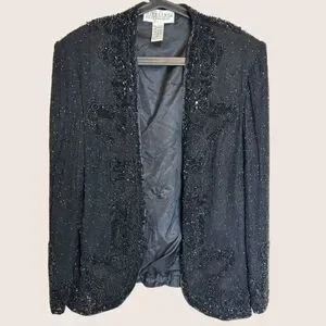 🖤 VTG 80s NITELINE DELLA ROUFOGALI SILK BEADED BLAZER JACKET BLACK XL