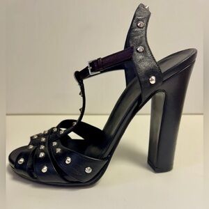 Step out in style with these chic black studded heels from Gucci. Perfect for any occasion, these shoes offer both elegance and edge.