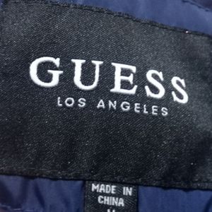 Like new Men's size medium GUESS puffer coat!! blue and white color block! Excellent coat for fall or winter.. Fashionable!! **NO flaws**