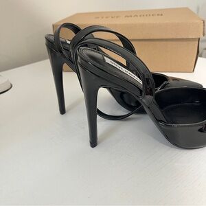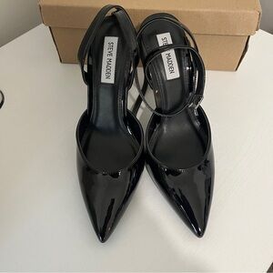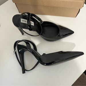 Step out in style with these elegant black pointed toe patent heels. These heels are sophisticated and perfect for a range of events, from date night to galas and weddings.