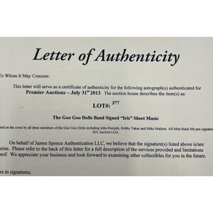 Goo Goo Dolls Signed IRIS Sheet Music JSA COA John Rzeznik Robby Taka Mike