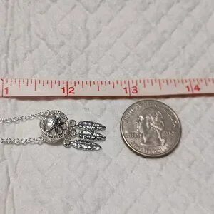 Pendant (including feather dangles) measures about 1 inch in length and 0.5 inch wide