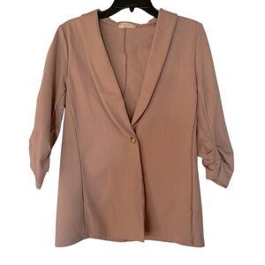 Altar’d State Med Brown Shawl Lapel Single Button 3/4 Ruched Sleeve Blazer