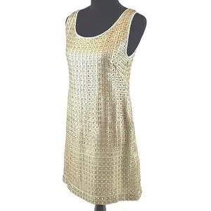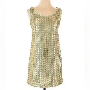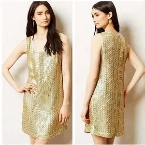 Anthropologie Sequin Mini Dress Golden Panes by Tabitha size 10 gold retro party
