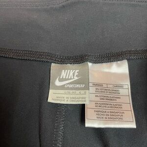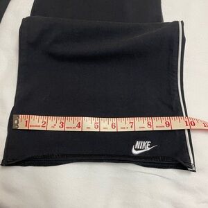 Nike Women’s Yoga Pants, size Large in black with white Nike embroidered on bottom left leg. Waist is 16” before stretching. Inseam is 32”. Very little wear!