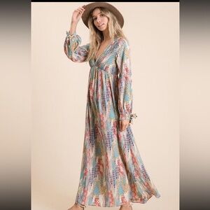 Vintage Bohemian Multicolor Maxi Dress 100% cotton thin and cool, spring perfect