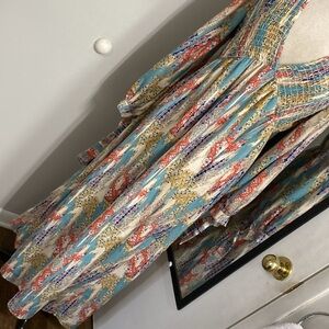 Embrace a bohemian vibe with this stunning VINTAGE multicolor maxi dress. Perfect for any occasion, this dress features a blend of vibrant colors and a flowing silhouette.