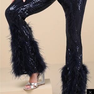 Shine in this stunning navy sequin V-neck jumpsuit. Perfect for a night out, this piece offers both elegance and comfort.