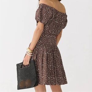 NWT J. Crew Drop Waist Cotton Poplin Brown White Mocha Floral Mini Dress Off 14