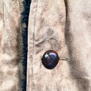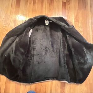 It offers a comfortable, loose fit, perfect for layering over various outfits. The coat features a luxurious mix of materials, including a soft alpaca lining and durable cotton backing, ensuring warmth and style. With the added benefit of water resistance, it’s both practical and stylish, making it an ideal choice for chilly days. The classic design is further enhanced by its distinctive label from Deerskin Trading Post in Danvers, Massachusetts, showcasing its unique heritage. Whether dressing up for a night out or layering for a casual day, this coat is versatile enough to suit any occasion. Embrace the vintage charm and durability of this timeless piece! (Unisex)