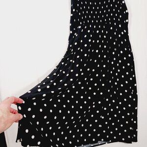 Old Navy, Black & White Polka Dot Sundress, Spaghetti Strap, Pockets, Large. This very pretty dress has a stretchy smoked back top, full skirt and side pockets. It is very soft and flowy. Great paired with white sunglasses, not to mention all the other great styling options.