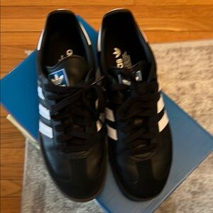 Classic Adidas Samba sneakers in black, size 7.5 men’s (I wear 8.5 in women’s) Gently used, comfy and cute!! 🕸️