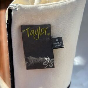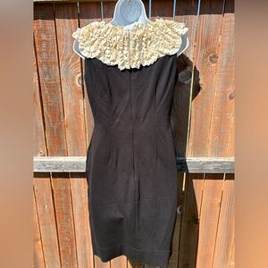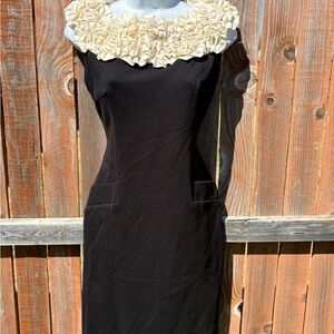 Taylor Black Ponte Sheath Dress With Ivory Rosette Neckline Size 4