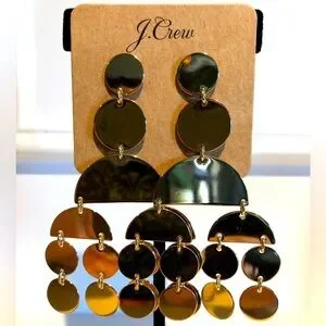 Photos make the earrings look like they have scratches but they really don’t show any when you wear them - see the video for a better sense of how pretty they are. Gold. Very light weight and flexible.