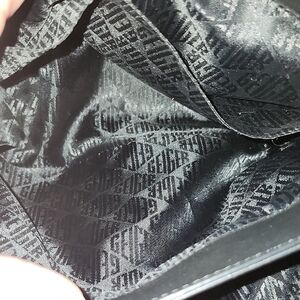 This elegant shoulder bag features a classic black quilted design, complemented by a striking gold-toned chain strap. Its structured rectangular shape and gold hardware accents add a touch of sophistication, making it a perfect accessory for any occasion. small tear on bottom of bag was leather glued to stop tear. Priced accordingly to small flaw.