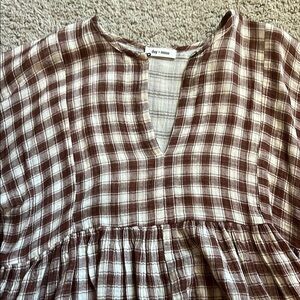 Stylish and comfortable brown checkered dress. Perfect for casual outings. Great condition. I am 5’5” and it hits mid thigh