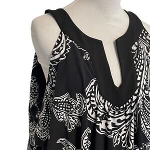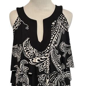 WHBM Tiered Flapper Dress Womens XL Black Paisley Sleeveless Flouncy Career