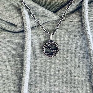 Gucci 925 Sterling Silver Textured Interlocking GG Necklace and Textured Chain