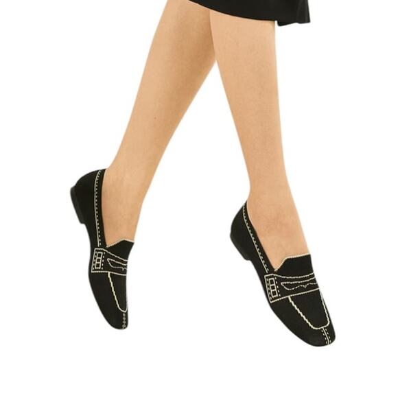 Vivaia Square Toe Patterned Loafers Deep Ebony Black Flats Loafers Shoes Size 7