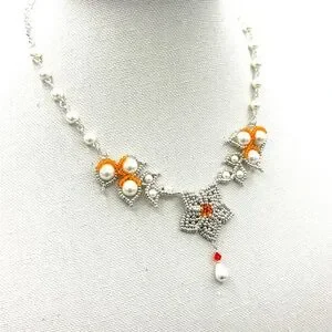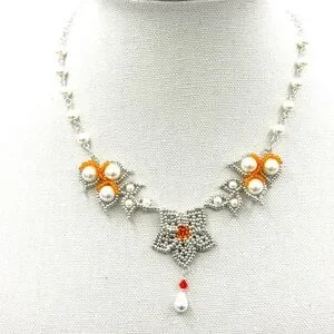 Hand Crafted Silver and Orange with Pearl Flower Necklace
