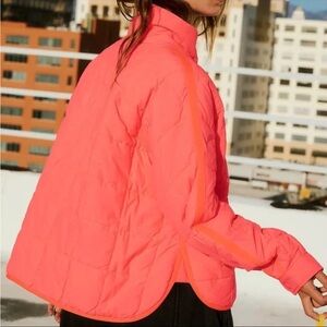 Stylish and warm puffer jacket. Perfect for a bold look in color Neon Coral.
