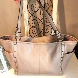 Coach Park Carrie Putty Beige Studded Rivets Tote Bag
