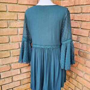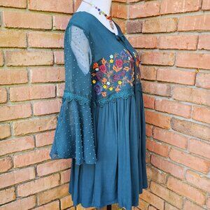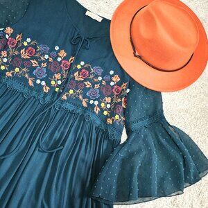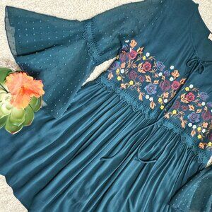 Altar'd State Brand Dress. Forest Green Floral Embroidered Swiss Dot. Size Small