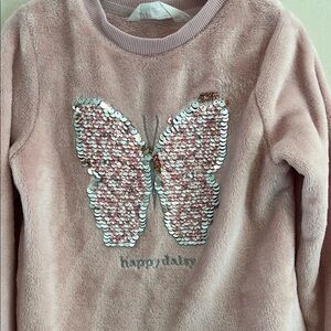 H&M Girls Pink Sequin Butterfly Kids Sweatshirt Size 4-6