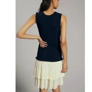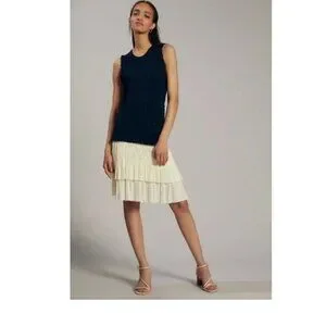 Anthropologie/Current Air LA Knitted Navy Dress with Ivory Contrast Skirt SZ M