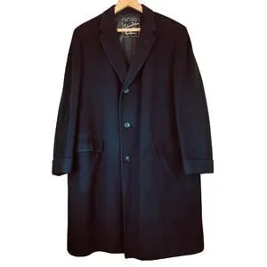 VTG 100% Imported Cashmere Overcoat Mens Black Cashmere Deluxe Roger Laurence