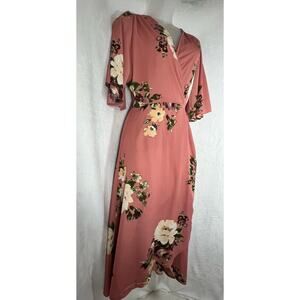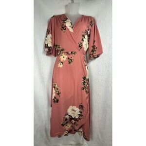 NEW Peppermint Brand Dusty Rose Floral Chiffon Wrap Dress Sz LG Summer Easter