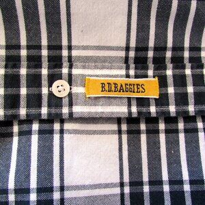 MEN'S COTTON SHIRT, M- L TALL, 16x34" LONG SLEEVED BLACK WHITE PLAID BD BAGGIES