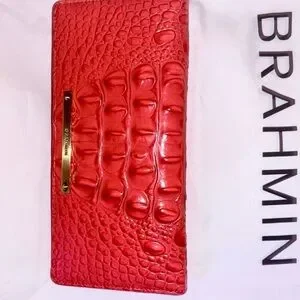 "The Ady Wallet is exactly what you have been searching for. Super sleek and light weight with plenty of credit card slots and a zip pocket for your change. Extremely functional with its flat design, perfect for fitting in your favorite clutch or crossbody. Featured in Heat Melbourne, our signature croc-embossed leather in a fiery red hue. Genuine leather."