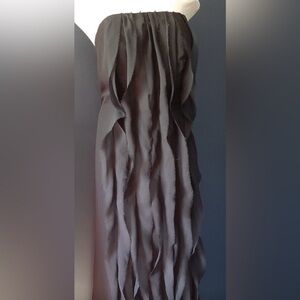 EUC- This elegant chiffon ruffled black dress offers a sophisticated look for any occasion. Its unique design adds a touch of modern style.
