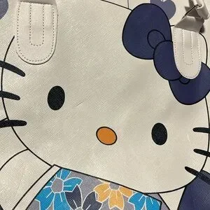 Charming Hello Kitty tote / traveled bag in white and blue with teal and yellow floral print